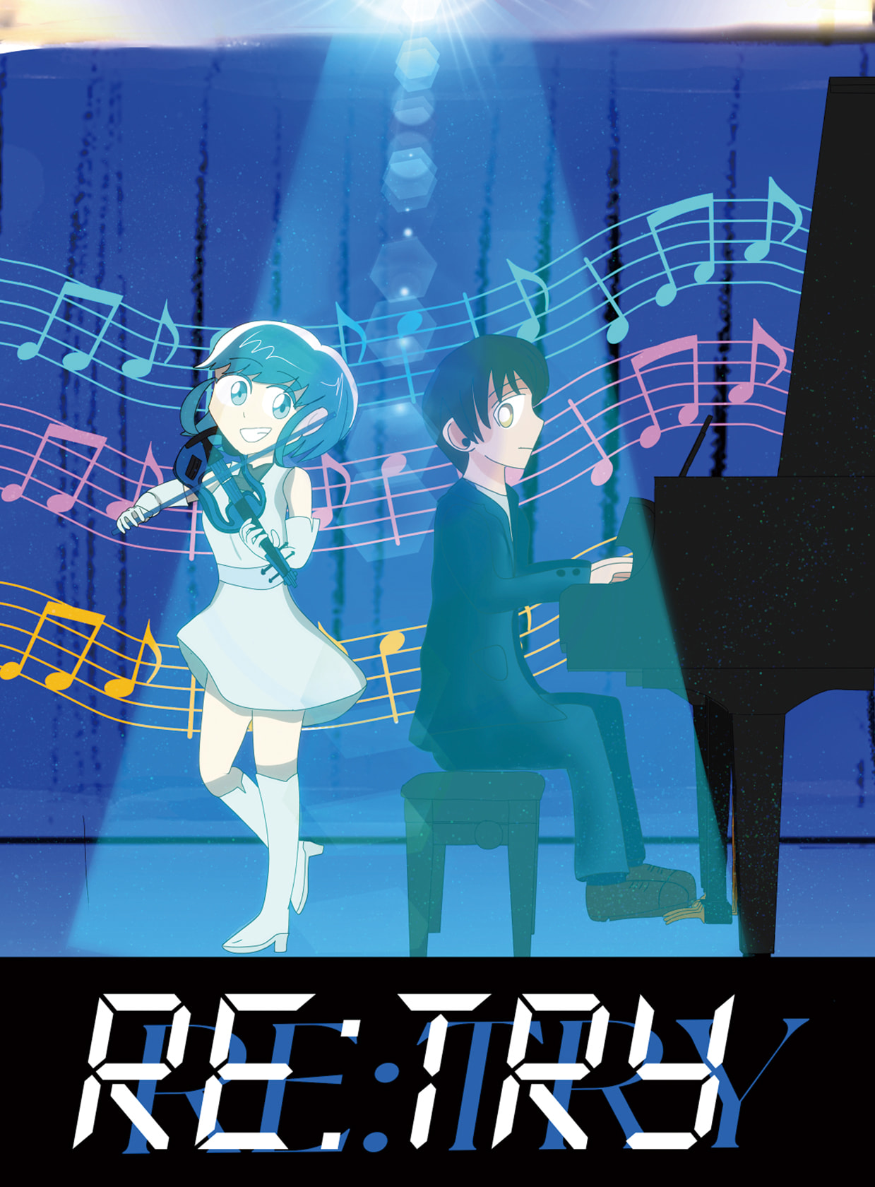 ピアノ演奏者のハルトは相方のバイオリニストのアキを失ってしまう。 さらにはライブハウスでの本番の演奏が近づいていた。その時、AIの人型ロボットのアイが新しいバイオリニスト、相方としてやってくるが本番に向けての練習がうまくいかず、大ピンチ。果たして二人の演奏はうまくいくのだろうか。 これからの新しい未来がやってくる中で、どんなに失敗しても、落ち込んだとしても前に向けられる、再起(リトライ)できる作品を制作しました。音楽でつながる二人の関係をぜひご覧ください。