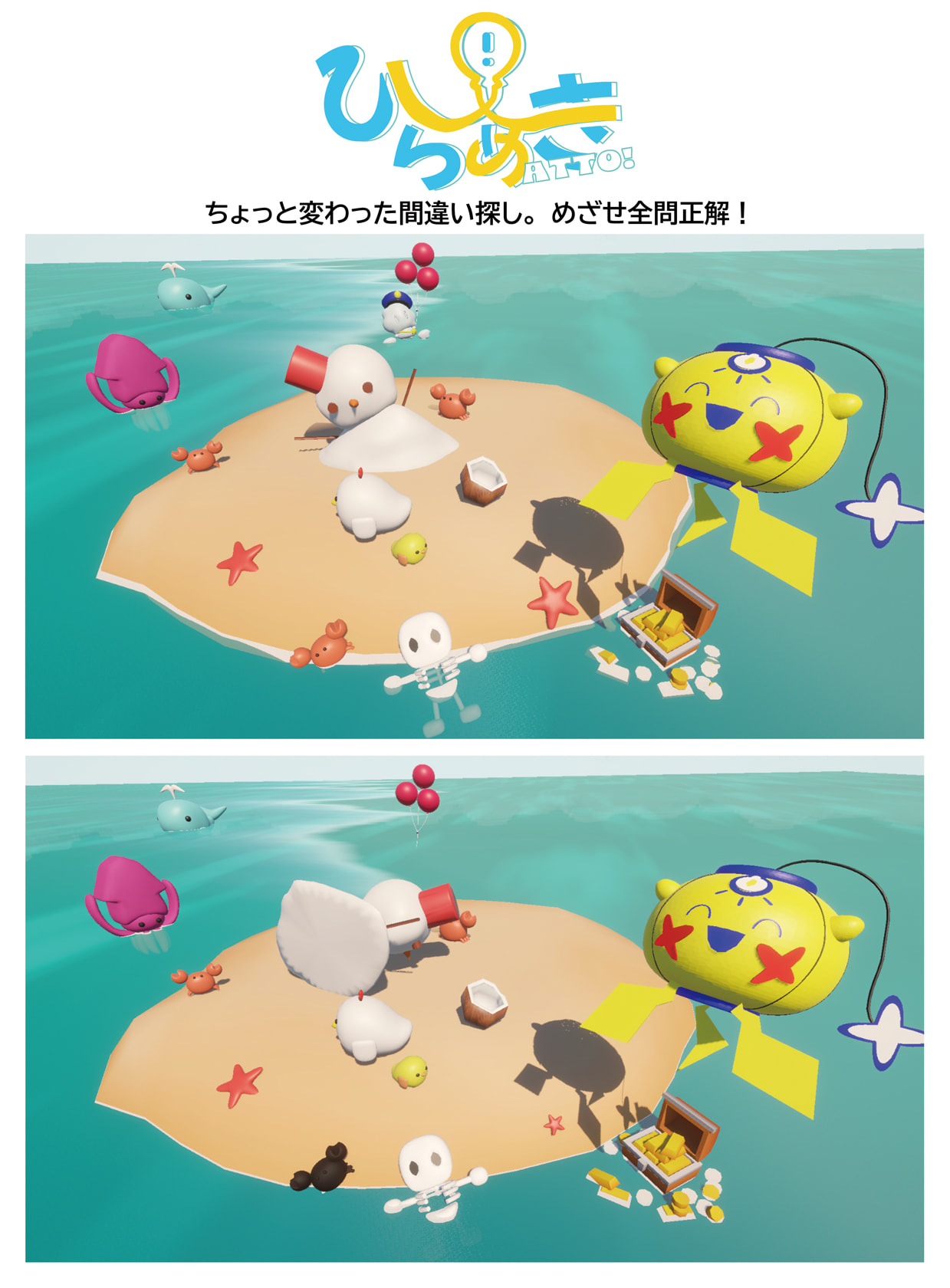この作品は、『動きによる空間認識能力の違いに関する研究』をテーマに制作した3D間違い探しです。静止した画面ではなく、ズーム、回転、徐々に変化する動きなど、さまざまな演出を取り入れた8種類のシーンで構成されており、それぞれの動きに応じて異なる認識のしやすさが生じるよう設計しています。 本研究では、動きの速さや情報量、視線誘導のされ方といった要素が、間違いの発見のしやすさにどのように影響するのかを検証し、動きを伴う環境における空間認識の特性を明らかにすることを目的としています。