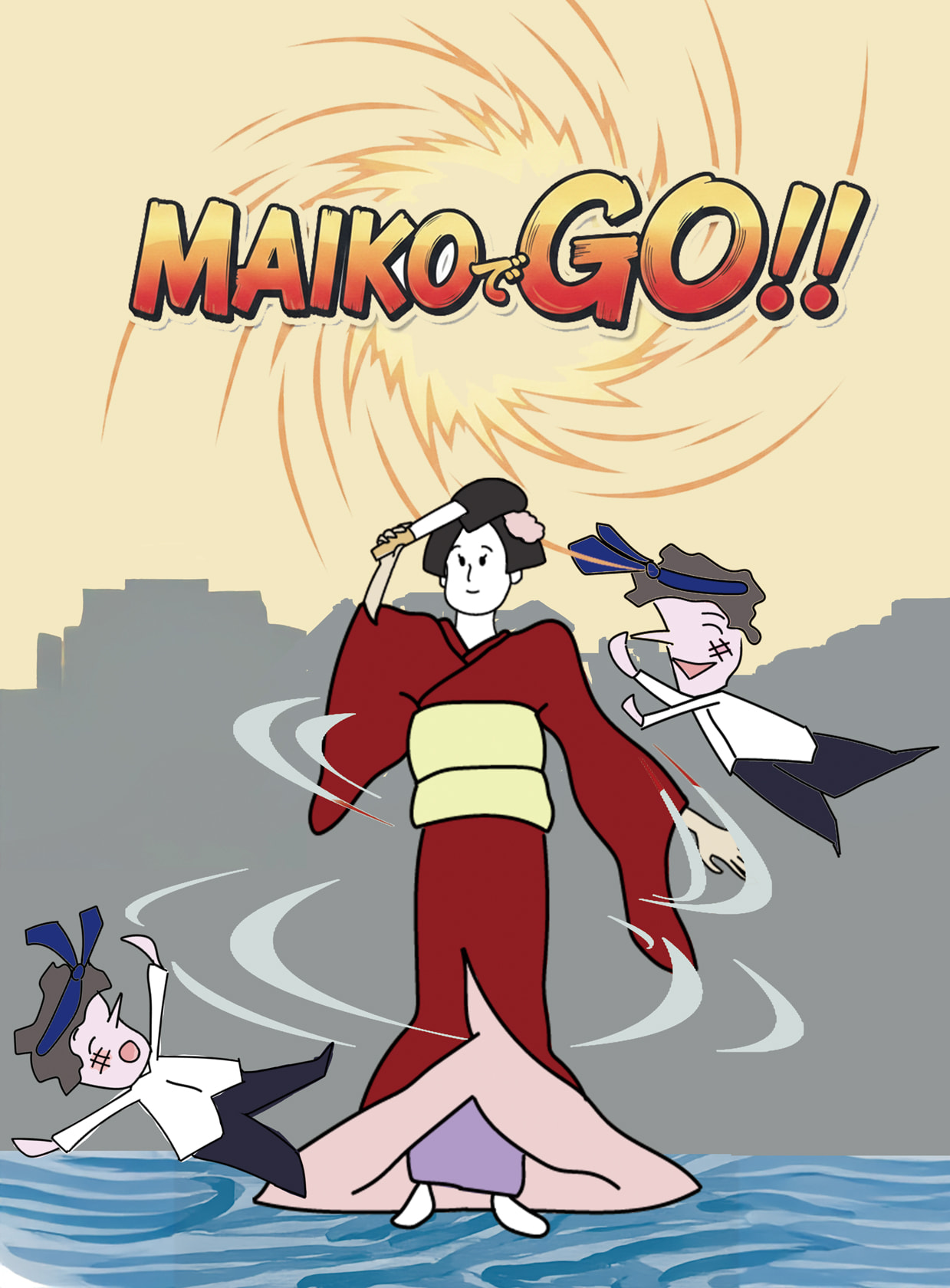 この作品は「Spin Attack」というゲームを元に制作したアクションゲームです。 今日は年に1度開かれる、飲んで騒いでの騒夜祭(そうやさい)。京都の町は酔っ払い達で大混乱。そんな中を舞妓さんは、得意の舞で迷惑客を退けて、無事にお座敷へたどり着こう。道中の鴨川では裏橋を渡るので落ちないように気をつけよう。