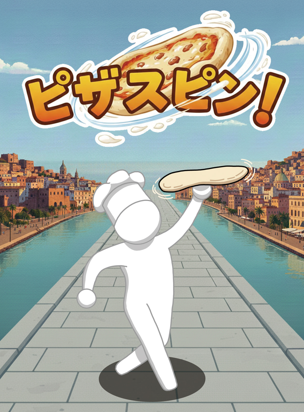 この作品は、「SpinAttack」をもとに、自分が考えたアイデアを取り入れて制作したゲームです。 ピザ生地を回すピザ職人をテーマに、巨大ピザをお客さんに届けるために邪魔してくるライバル店の店員を倒しながら、ピザを焼き、皿に投げ飛ばして完成させましょう。 敵を倒し、ピザを投げ飛ばすという簡単操作なので、子供から大人まで楽しむことができます。 ステージによって、ピザが違うので、いろんなピザを見ることができます。ピザを完成させるまで、敵を倒しまくる時間を楽しんでいただければと思っています。